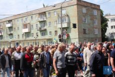 Звідти тіло бійця на руках понесли на майдан Незалежності. Там його зустріли місцеві жителі, дехто ставав на коліна.