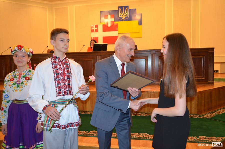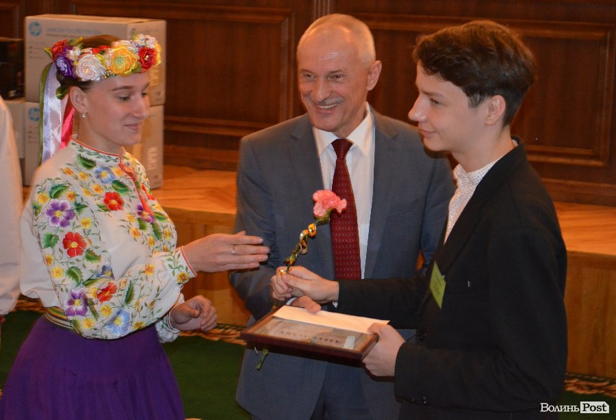 Опісля він вручив для 20 учнів стипендії голови Волинської ОДА та нагородив преміями і почесними грамотами адміністрації 5 педагогів.