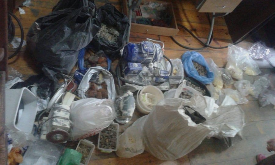 Під час обшуку виявили та вилучили понад 65 кг бурштину, з яких 5 кг – обробленого "сонячного каміння", п’ять станків й інше обладнання для його обробки.