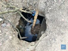 Після себе трактор на вулиці Парковій лишив дві великі ями. Як можна побачити на фото, в одній навіть видно воду, а звідти йде специфічний запах.