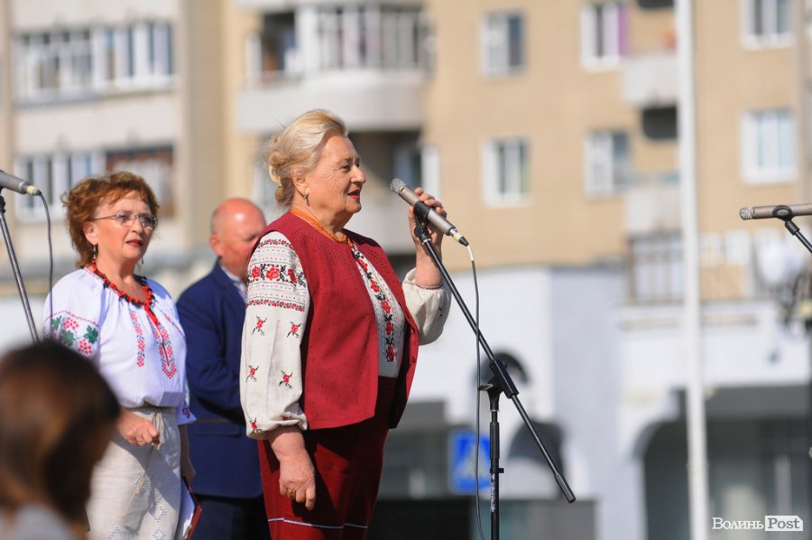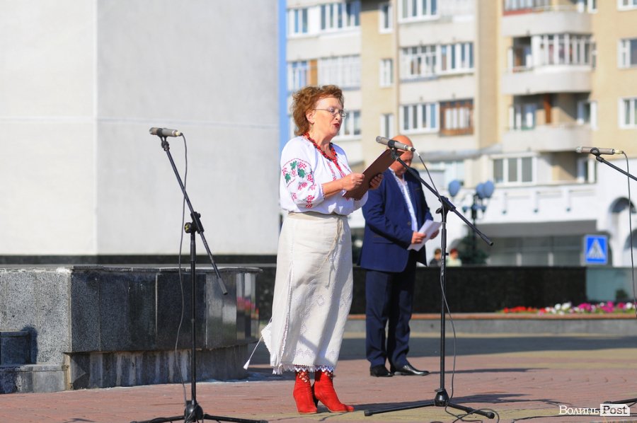 До вітань долучилась також голова Волинської обласної організації Союзу українок Любов Ганейчук, яка розповіла про походження вишиванки та її важливість для кожного українця.