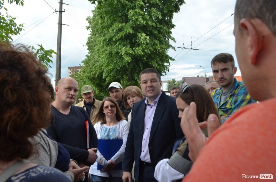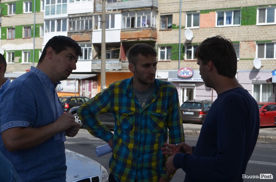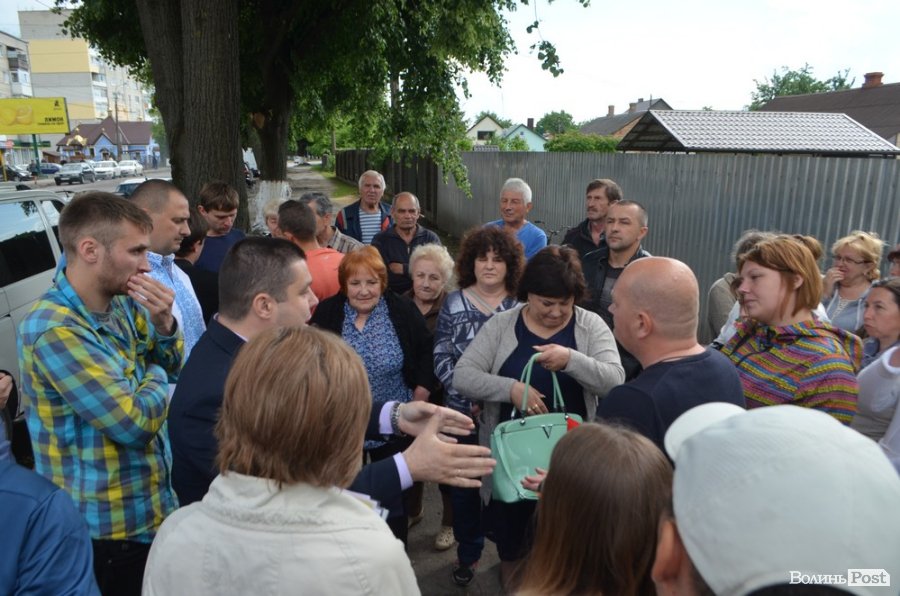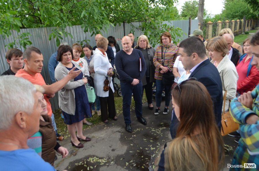 Біля ділянки на Львівській 112, зібралися близько 40-ка людей, серед яких власник ділянки Юрій Крищук, підприємці та місцеві мешканці. Поспілкуватися із людьми прийшли депутати міської ради Микола Собуцький та Богдан Вавринюк і заступник міського голови Костянтин Петрочук.