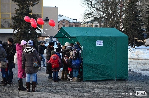 У центрі Луцька у День Святого Валентина відбулася акція для закоханих, на якій парам пропонували зігрітися чаєм, поїсти печива та «дізнатися про любов».