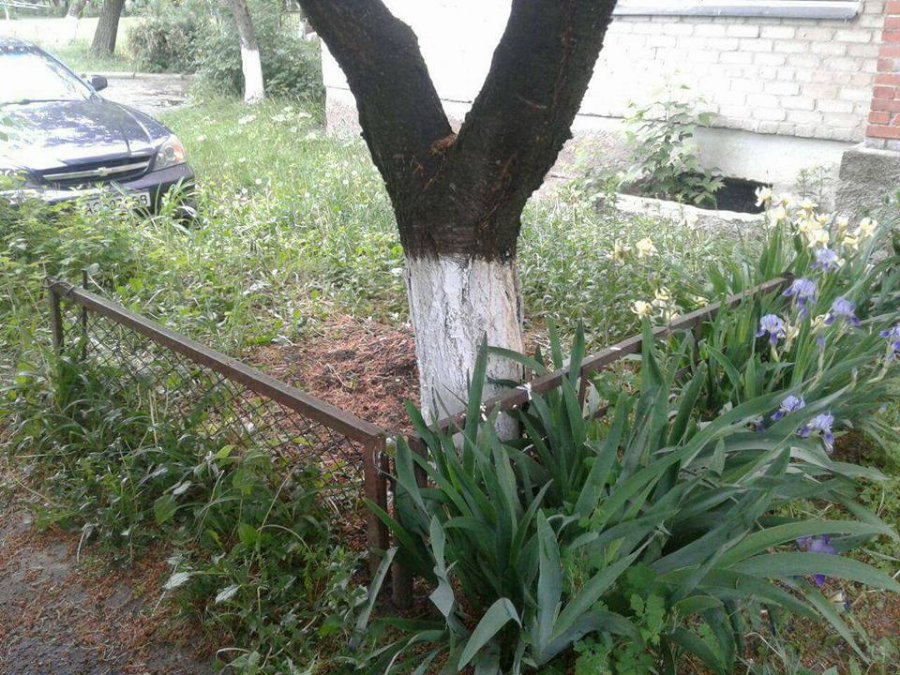 Громадяни обгородили грядки незаконними парканами, які вони змайстрували з металевих сіток, дерев’яних трухлявих штахет, відходів старого шиферу, а також міжкімнатних дверей, які замість того, щоб утилізувати, поставили під вікнами багатоповерхівки.