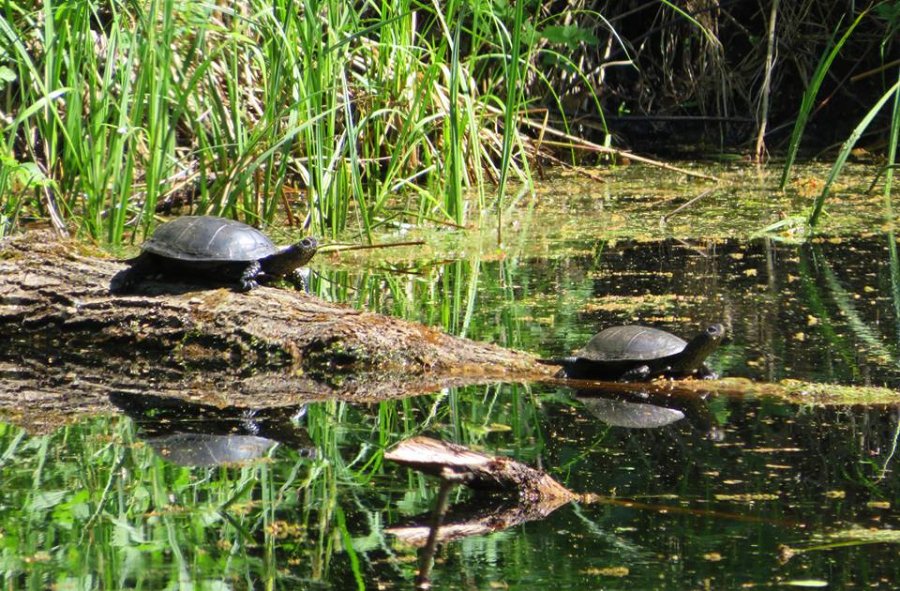 «Коли сонце виходило з-за хмар, черепахи та вужі вилазили на плаваючі у воді колоди, аби зігрітися. Є цікаве фото, де черепаха залізла на вужа і разом вони гріються. Також було помітно, як вужі плавають по ставку та річці Кормин, деякі спостережувані особини досягають в довжину 1 м», - йдеться у повідомленні.