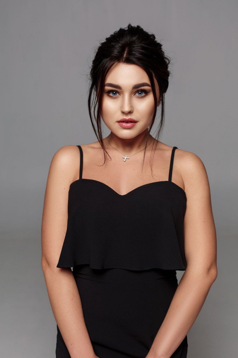 Образ учасниці з Луцька Іванни підкреслює її чуттєвість і сексуальність. Стрілки привертають увагу до очей дівчини, а елегантна зачіска додає образу жіночності.