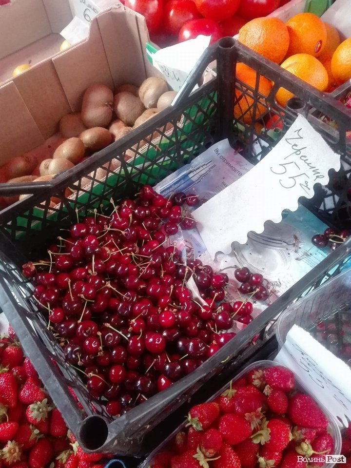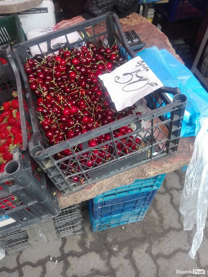Так, на Центральному (Старому) ринку за кілограм черешні продавці просять від 35 до 55 гривень. Локацій продажу ягідного смаколика на Старому ринку поки лише декілька, а за 35 гривень черешню продають лише в одному місці на весь ринок. Вона, кажуть продавці, місцева, привезена із села Великий Омеляник, що в Луцькому районі, тому дешевша, ніж інша.