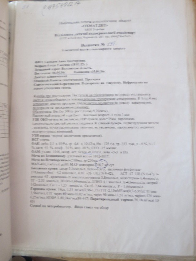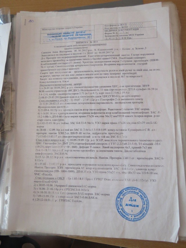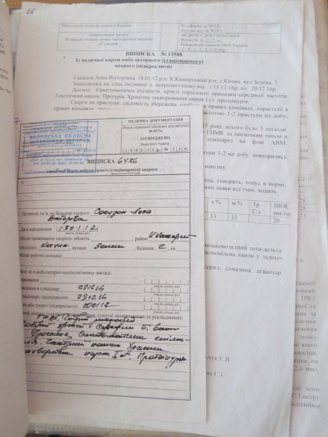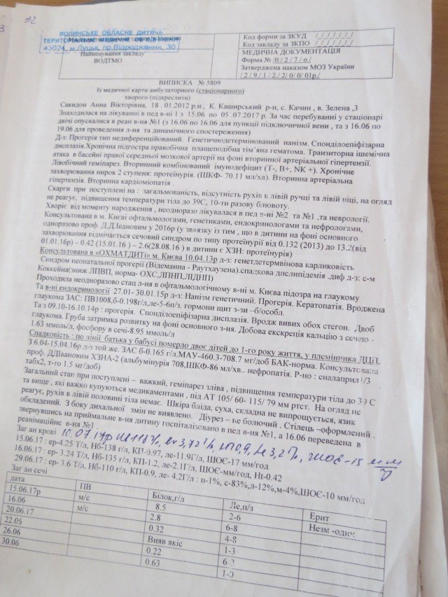 Ані Сакидон із села Качин Камінь-Каширського району 6 рочків, вона важить п’ять кілограм, а зріст 56 сантиметрів. Лікарі поставили невтішний діагноз – прогерія Хатчинсона-Гілфорда. Це рідкісне захворювання, що проявляється передчасним старінням організму.