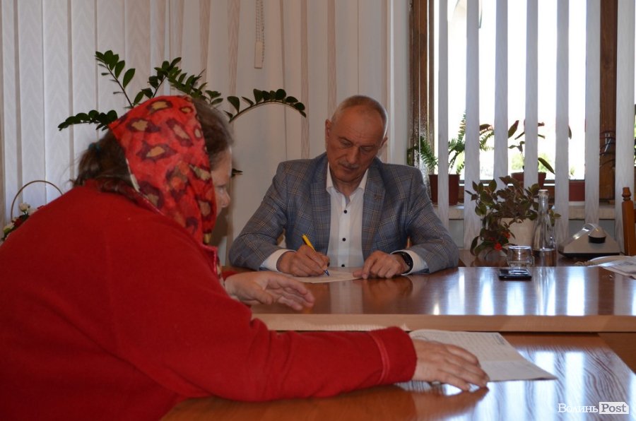 Перед кабінетом зібрався понад десяток людей, які прийшли розповісти про наболіле. Одним із перших до голови ОДА потрапив Віталій Алексюк із Ківерців. Чоловік вже не перший рік має серйозну проблему - у нього відсутній нормальний доїзд до власного будинку через сарай, який на землях загального користування звів сусід. Чоловік розповів, що проживає у Першому київському провулку, однак протягом 10-ти років не може без труднощів потрапляти на своє подвір’я.