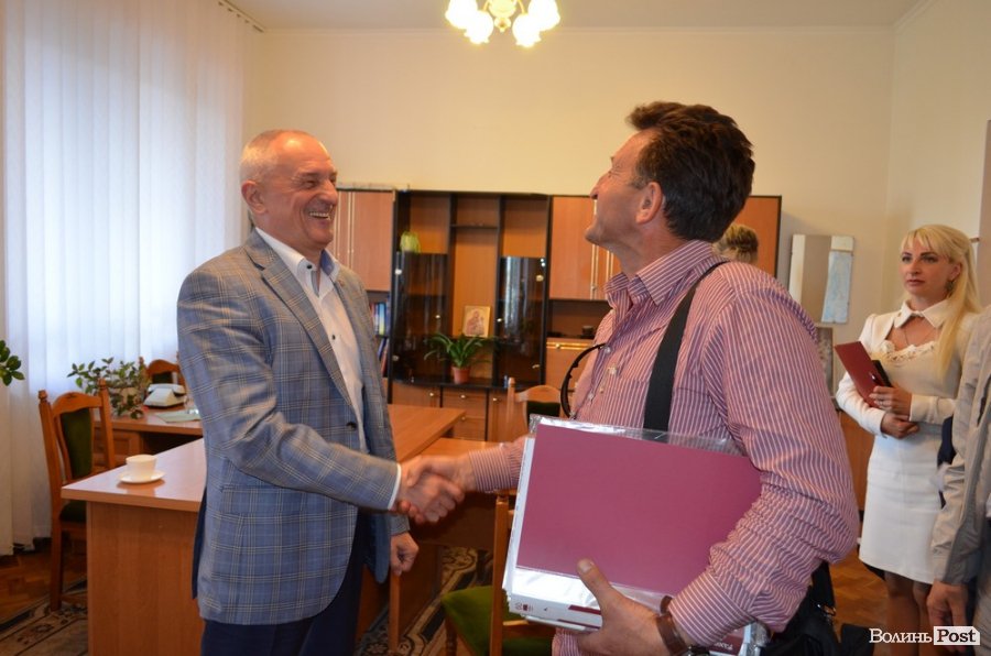Також на сьогоднішній прийом завітав відомий волинський скульптор Василь Рижук. У нього було декілька питань – перші два стосувалися встановлення в області його творінь та укладання догорів стосовно авторських прав на барельєф на драмтеатрі. Однак очільник ОДА зауважив, що питання, на жаль, не в його компетенції.