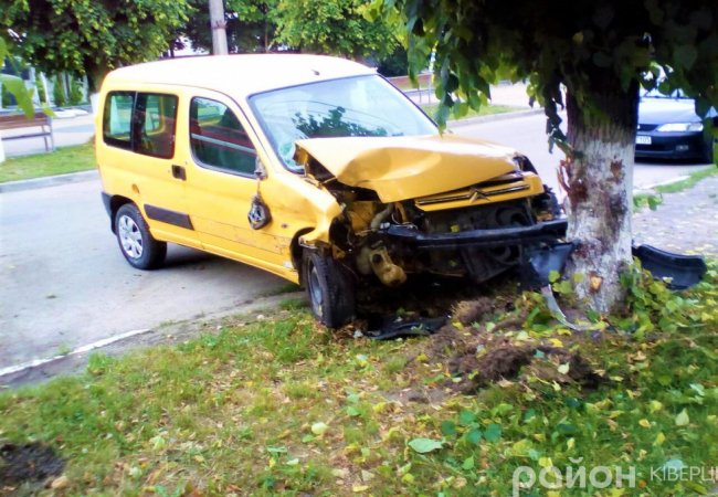 На вулиці Незалежності, поблизу дитячого садочка № 2 зіткнулись дві автівки: Citroen та ще одна іномарка. Через це автомобіль Citroen злетів з дороги та врізався в дерево.
