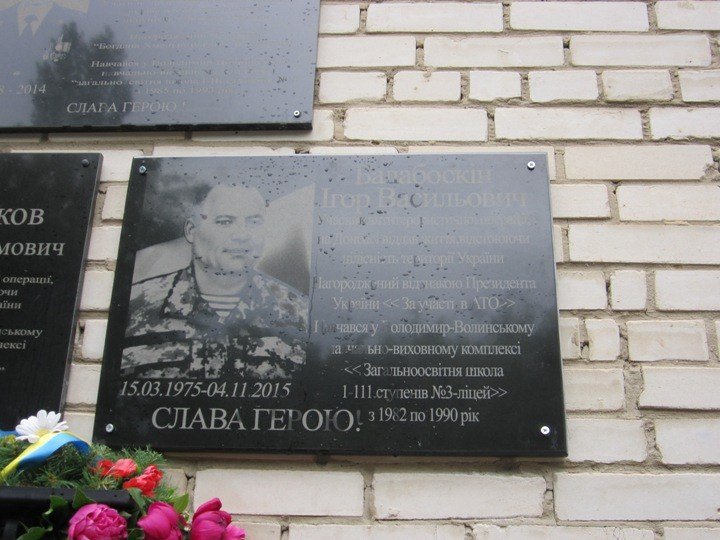 У Володимирі-Волинському сьогодні, 22 травня, у НВК №3 відбулося відкриття меморіальної дошки учаснику АТО та колишньому учневі цього навчального закладу Ігорю Балабоскіну.
