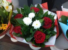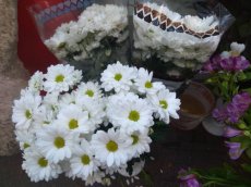 Найпростіші букети з кількох хризантем коштують 50-60 гривень, з кількох троянд з низьким стеблом - від 150 і до 250. Найдорожчі 250-350. Там поєднання різних видів квітів - троянд, лілій та інших.