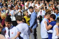 Традиційно пролунав гімн України. Опісля вшанували випускників школи, які загинули на Сході за незалежність держави.