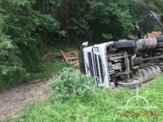 Як ідеться в повідомленні, вантажівка перевозила деревину.