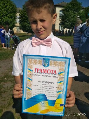 У ДП «Турійське ЛГ» також привітали своїх вихованців. Лісничий Турійського л-ва Василь Омелянчук та л-чий Ружинського л-ва Шубка Ю. Є. нагороджували грамотами та преміями переможців конкурсів «Людина і ліс» та «Охорона праці та безпека виконання робіт у лісовій галузі очима дітей».