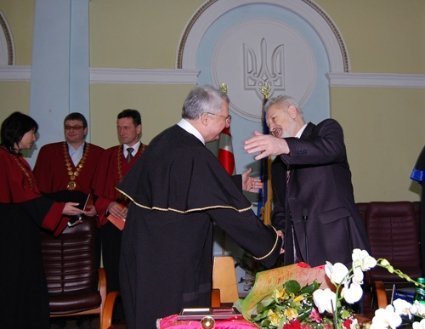 15 лютого у СНУ відбулася церемонія вручення диплома Doctor Honoris Causa ректору Національного педагогічного університету імені М. П. Драгоманова Віктору Андрущенку (на фото), повідомили у прес-службі СНУ.