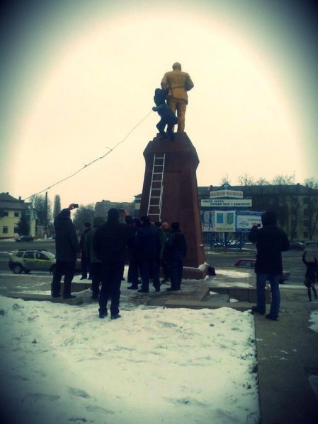 Близько 15:00 дня в п'ятницю, 15 лютого, активісти партії "Свобода" разом із нардепом Ігорем Мірошниченком демонтували пам'ятник Володимиру Леніну в місті Охтирка Сумської області.