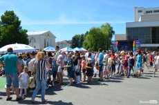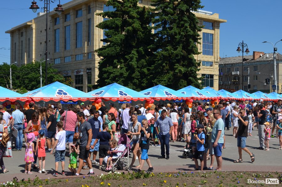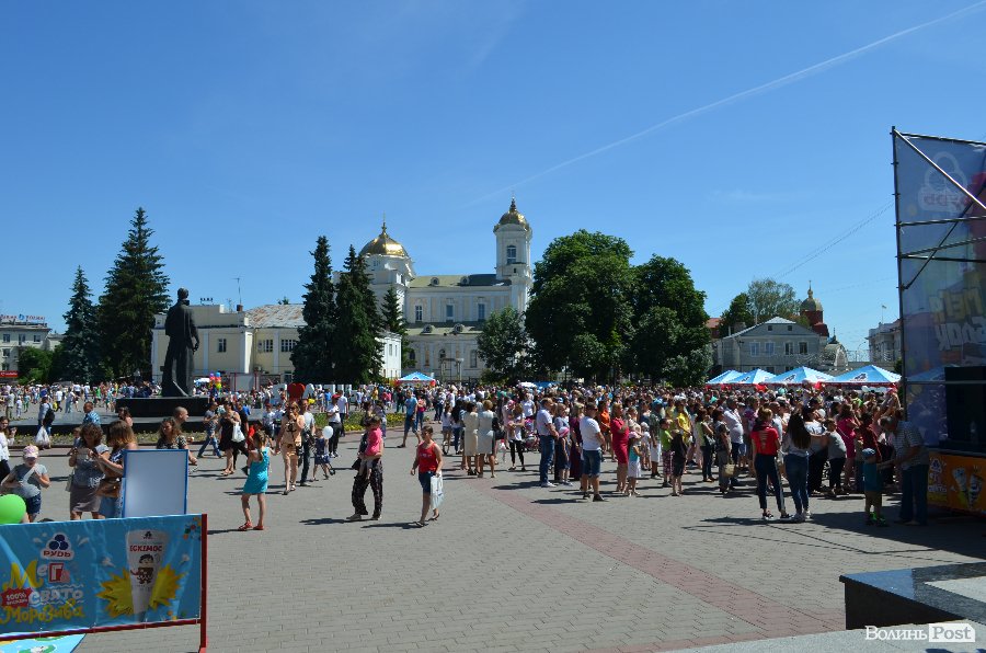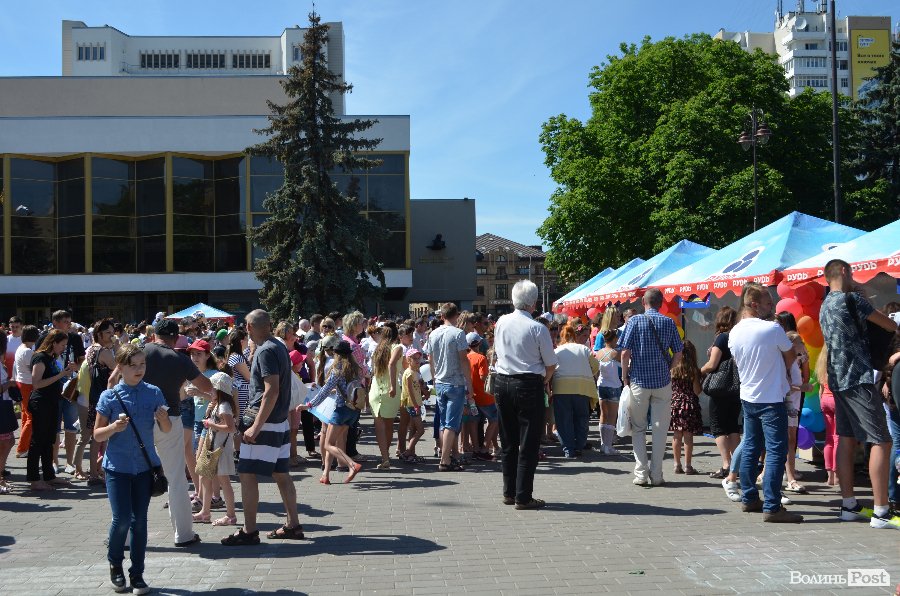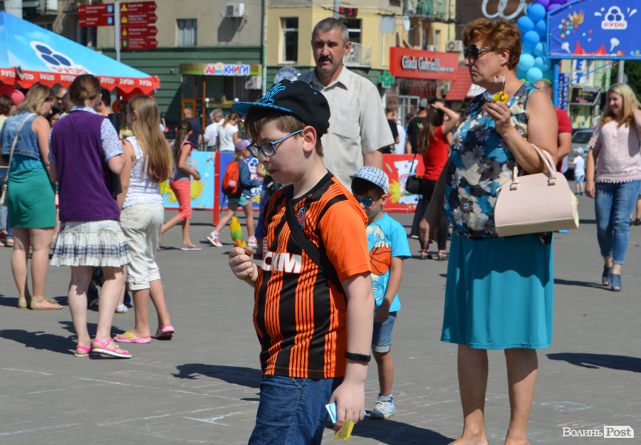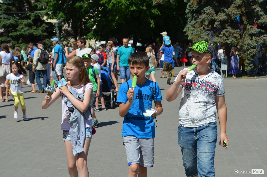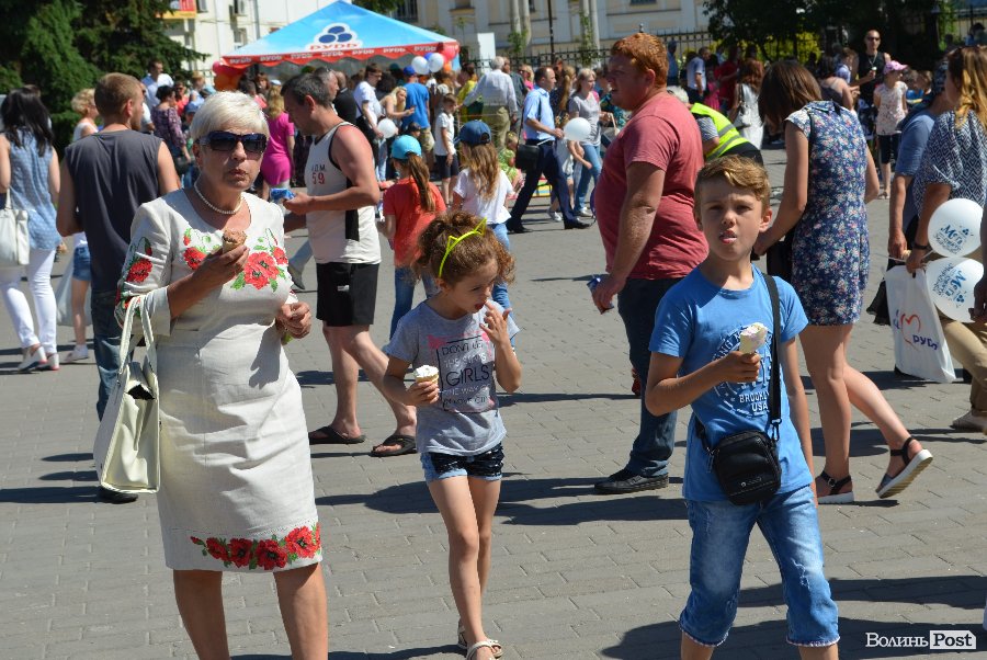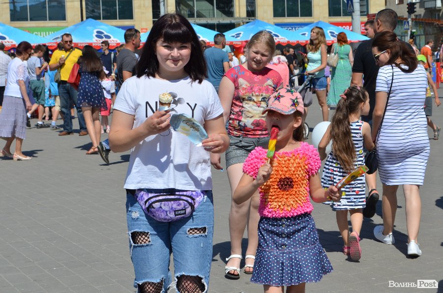 Театральний майдан Луцька заполонили діти та дорослі з морозивом і повітряними кульками: лунає музика і тривають веселощі. Біля зон відпочинку та наметів з холодними смаколиками відпочивають лучани.