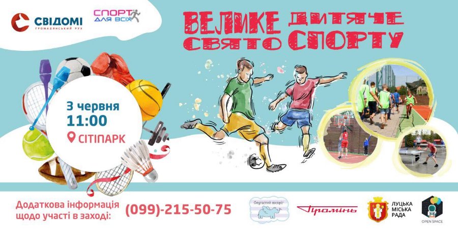 У неділю, 3 червня, об 11:00, лучан запрошують у Сіті Парк, аби взяти участь у Великому дитячому святі спорту.