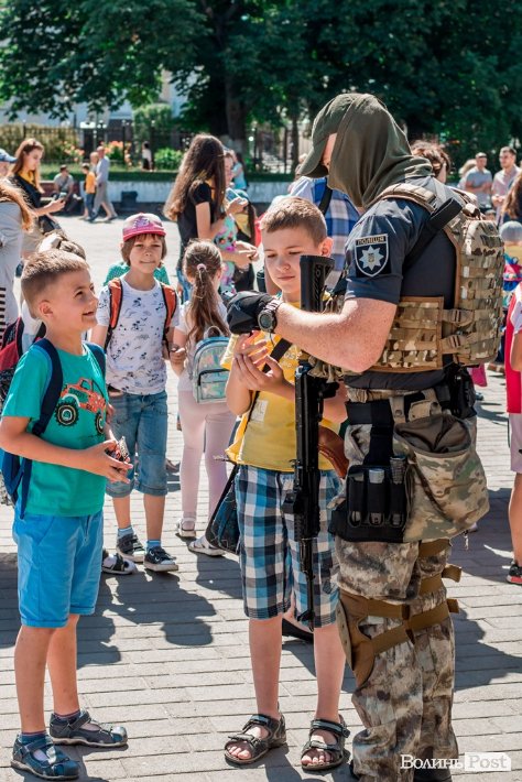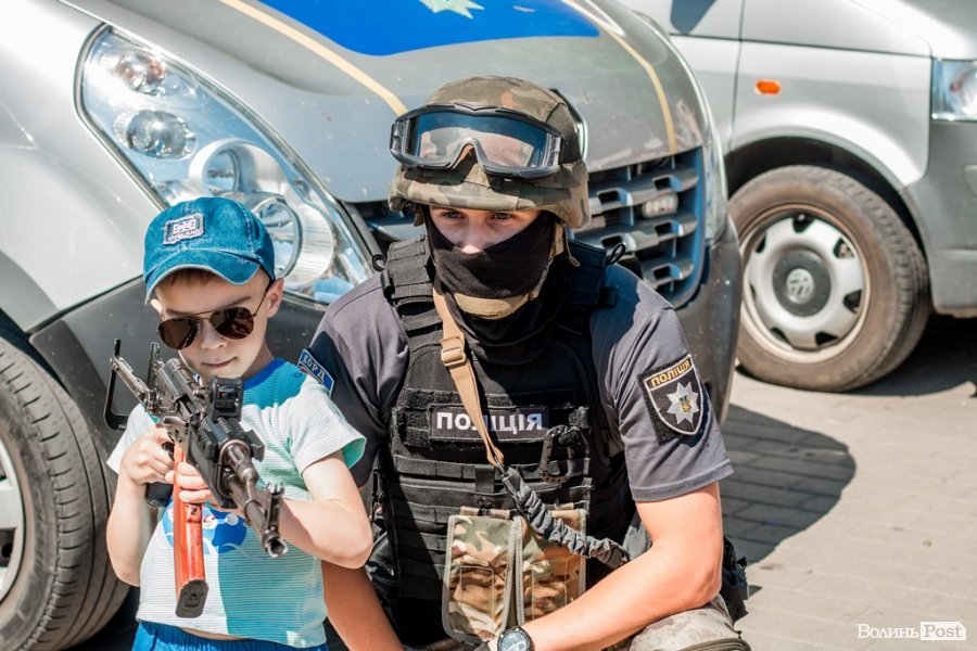 Так, вранці 1 червня на Театральному майдані волинські правоохоронці влаштували для малечі свято - тут діти мали змогу ознайомитися з роботою поліцейських та зробити фото у бронежилеті. На площі виставили спецзасоби та техніку, а поліцейські під пильним наглядом дозволяли дітям «повправлятися» зі зброєю та розповідали про її особливості.