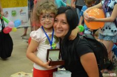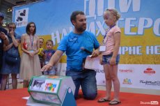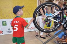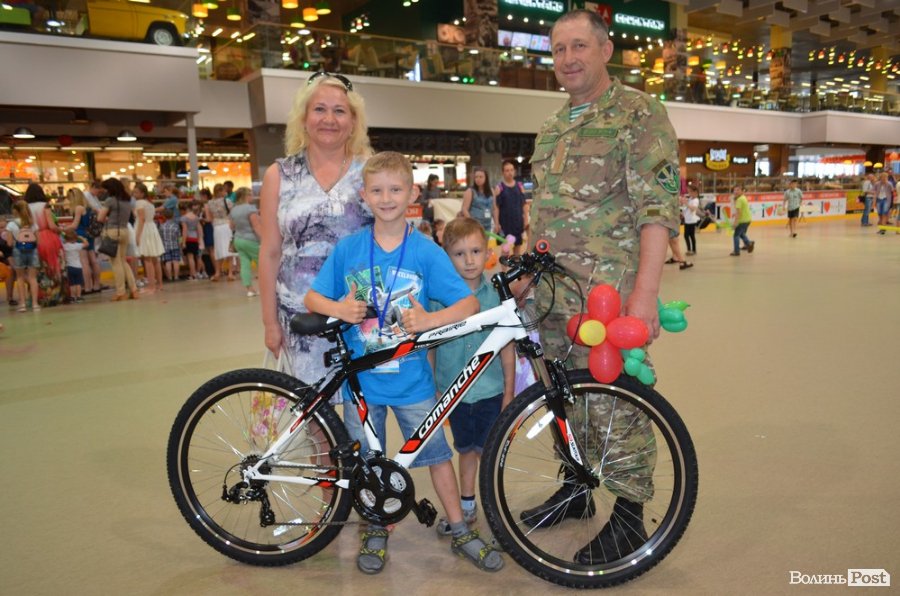 Під час заходу, поки одних діток розмальовували, а інші грали в футбол, паралельно тривала вікторина. Чи не найбільшим щасливчиком дня став 9-річний Любомир, який виграв велосипед. Тож просто на роледромі хлопець взявся випробовувати свою нову техніку.