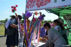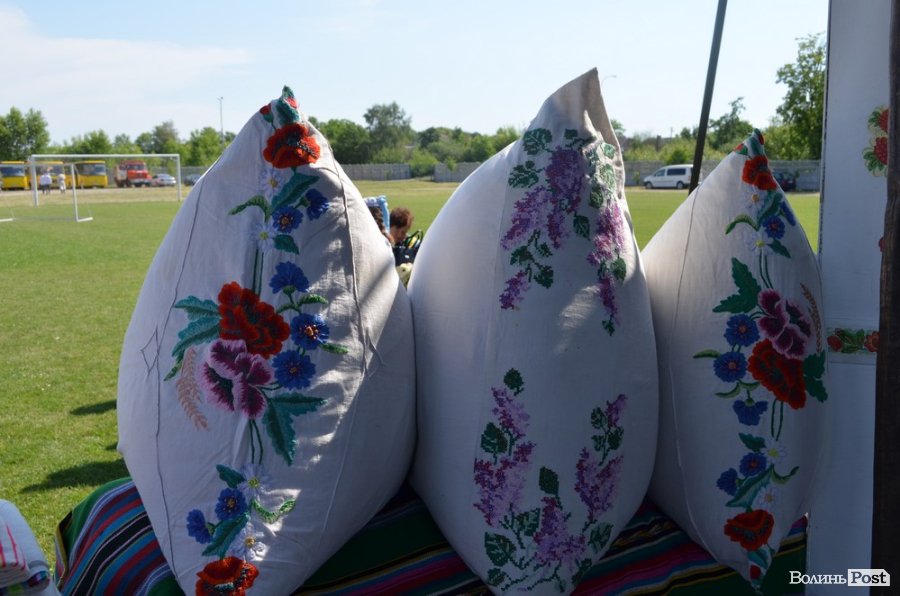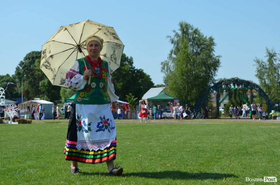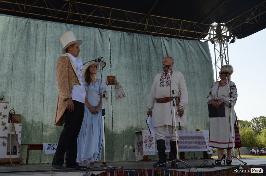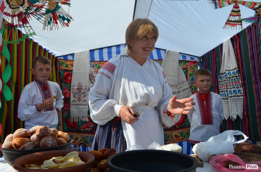 Тим часом навколо сцени метушилася ярмарка. Тут можна було знайти і традиційні для волинського весілля смаколики, і прикраси для наречених, і паперові квіти, і іграшки із трави і дерева, і вироби майстрів народних промислів.