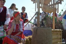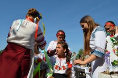 Поки господині розставляли макітри із варениками та розкладали пухкі паляниці, поруч замотувалися в хустини молодиці та плели коси дівчата, які нині приїхали демонструвати старовинні весільні обряди із різних місцевостей.