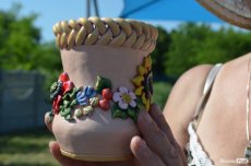 «Ось яйце із трипільським розписом і голубами для наречених, щоб завжди були парі. Щоб між ними був мир, злагода і любов», - розповіла майстер народного мистецтва, кераміст Тетяна Вегера з Луцька. Голобчани, які нині називалися не інакше, як веселяни (бо ж усі завітали на велике весілля), з цікавістю приміряли віночки та солом’яні брилі.