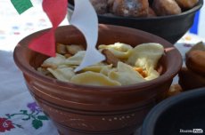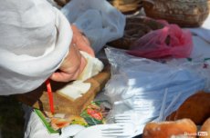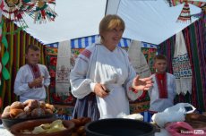 «Коли до нареченої їде наречений, батько з матір’ю і коровайниці, які привозять святий хліб до хати, вони водять її кругом стола 3 рази, примовляючи слова та благословляючи її на добру долю в майбутньому», - додала Зінчук. Тим часом, у наметі з Вишнева частували салом та розповідали про інші традиції.