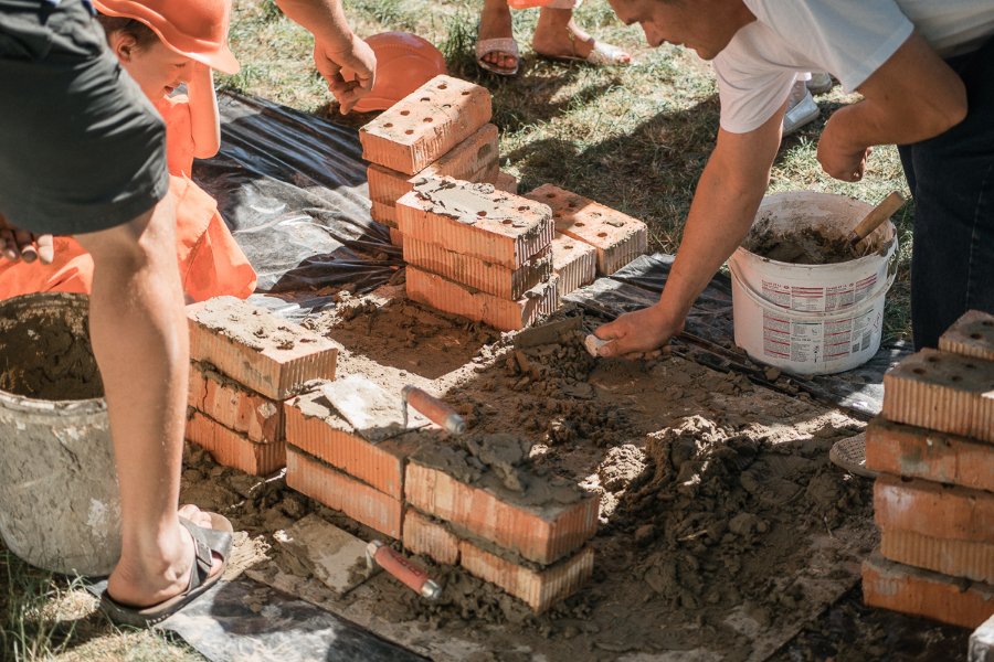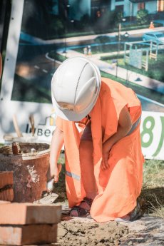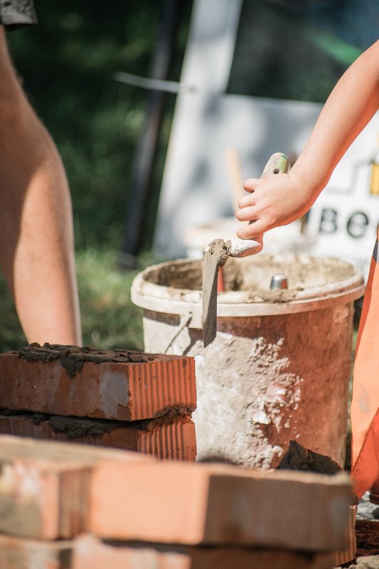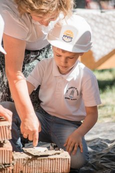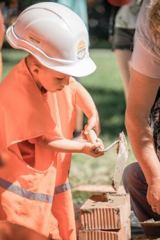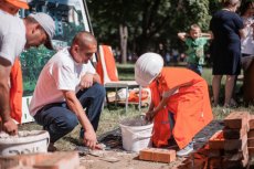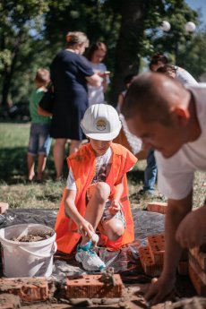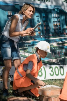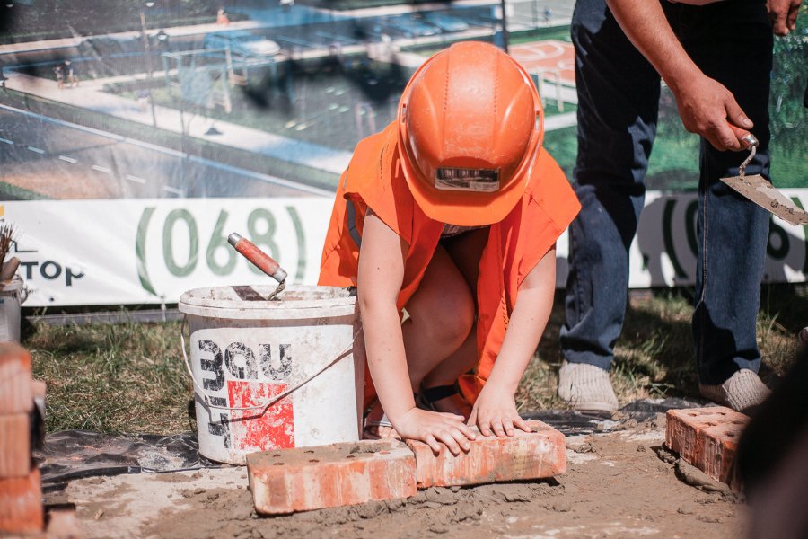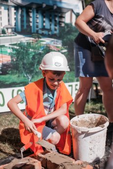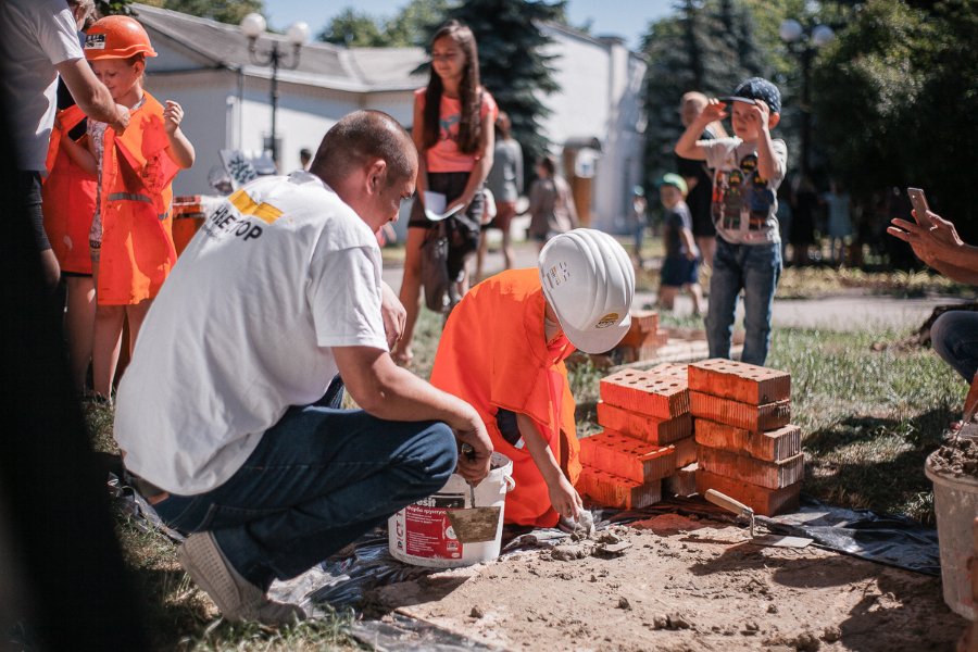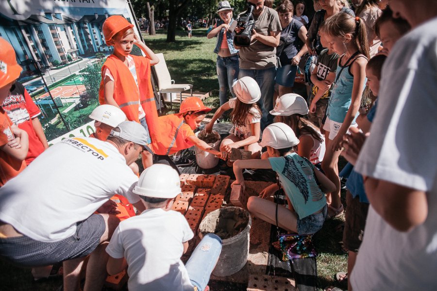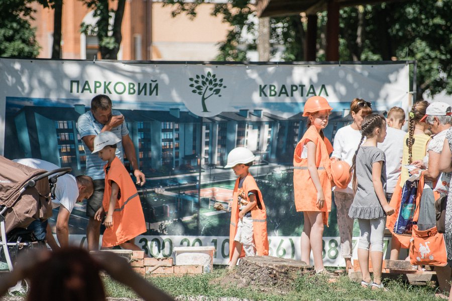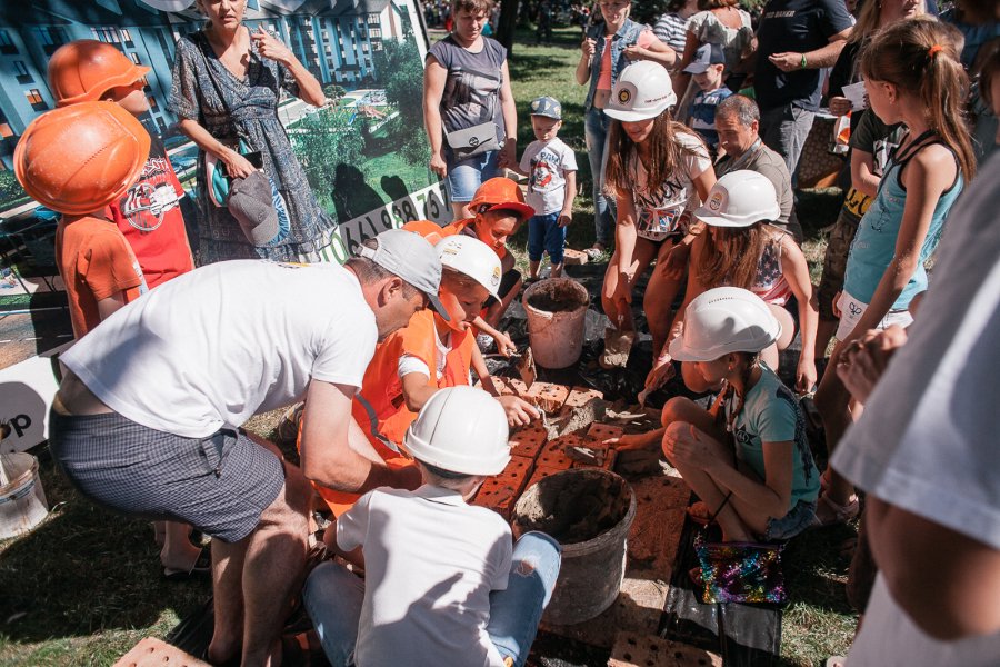 Як із користуватись будівельними інструментами та із цегли та цементу змурувати оселю, дітям показували менеджер з продажу квартир житлового комплексу «Парковий квартал» Будівельної компанії «Інвестор» Ольга Литвак та виконроб будівництва Олександр Поліщук.