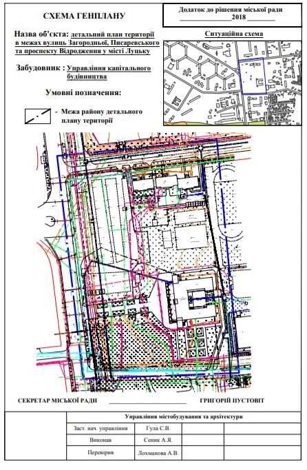 В Луцьку міську раду звернулось приватне підприємство «Відродження Інвест», яке має намір будувати житловий квартал на земельній ділянці у вказаному районі. Сама ж територія знаходиться у зоні розміщення торгівельних комплексів та ринків згідно із діючим планом зонування території міста. Тому виникла необхідність розробити детальний план території житлового кварталу у вказаному районі.