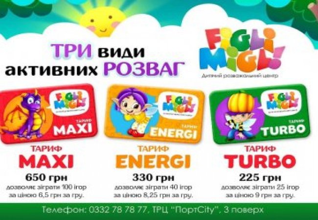 В дитячому розважальному центрі «Figli Migli», що в ТРЦ «ПортCity», можна придбати картки на розваги. Це не лише чудовий подарунок для малечі, а й хороша економія.