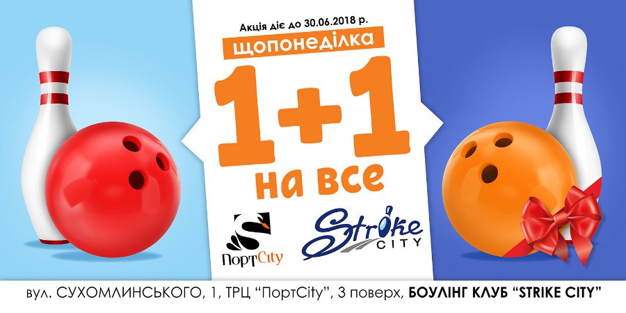 Скористайтеся вигідною пропозицією від улюбленого боулінг клубу StrikeCity, що в ТРЦ ПортCity та заплануйте початок тижня уже з вихідних!