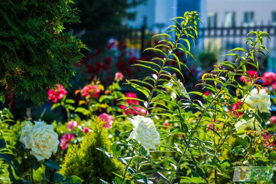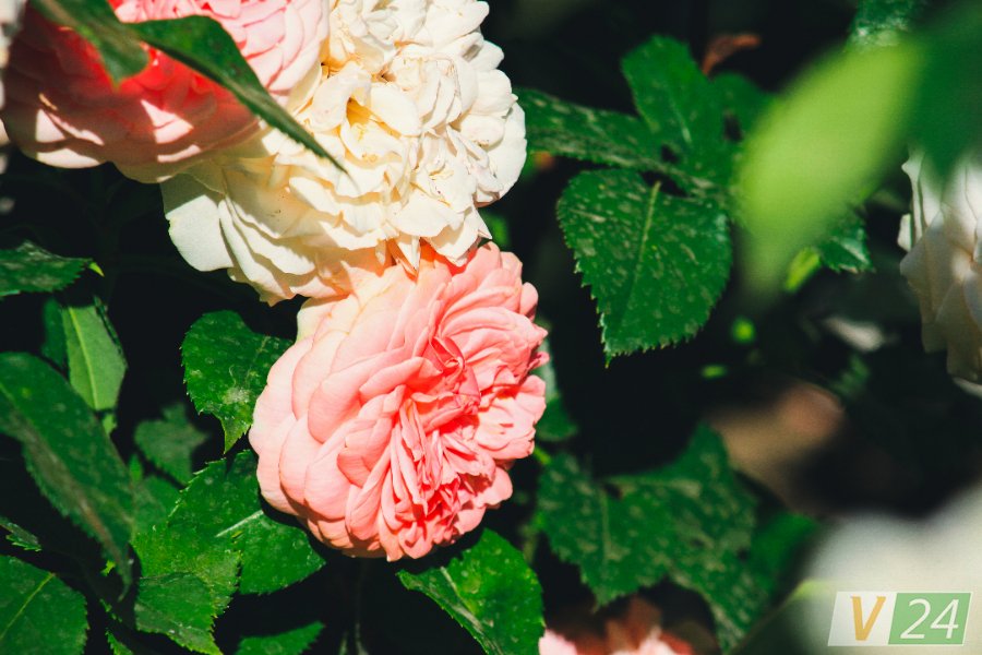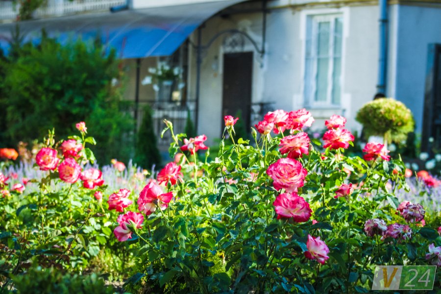 Рожеві, білі і червоні: у центрі Луцька зацвів трояндовий сад