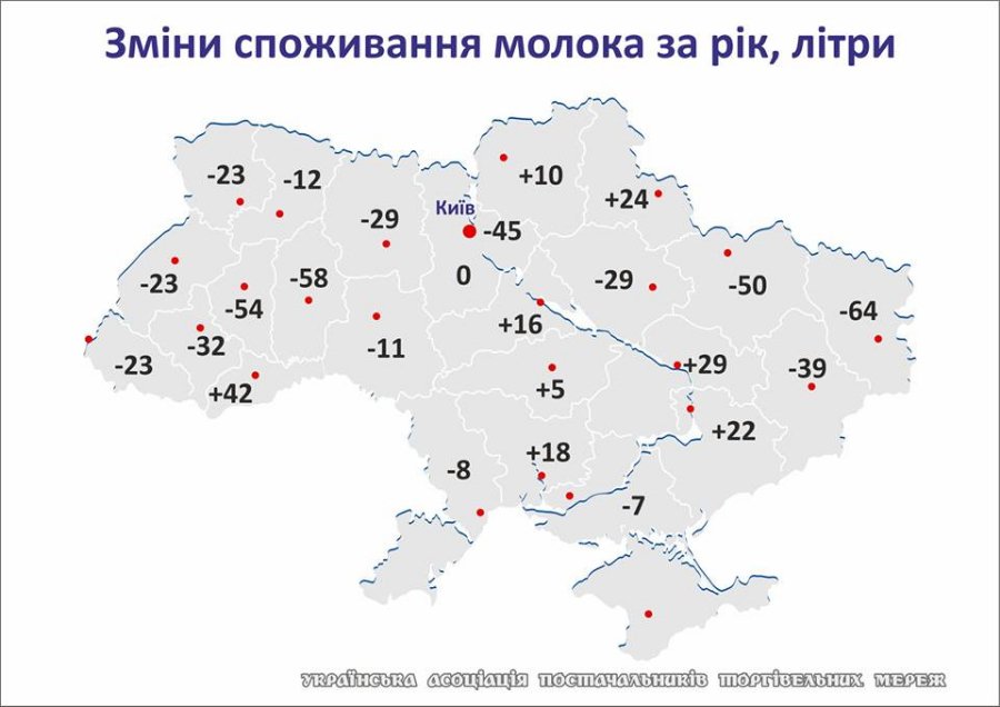 Асоціація постачальників виміряла купівельну спроможність українців у молоці. За останній рік на середню заробітну плату можна купити молока в середньому в Україні на 19 літрів менше, ніж минулого року.