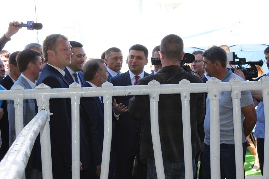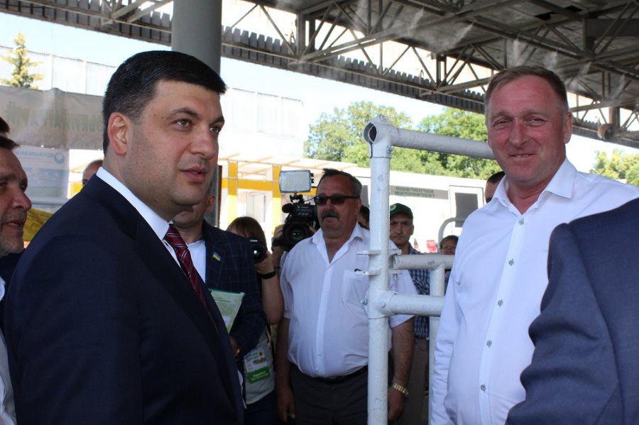 Очільник уряду оглянув виставку, зокрема і волинські агропідприємства, які вирощують велику рогату худобу. Гройсман поспілкувався із керівником СГПП «Рать» Віктором Шумським та директором ТзОВ «Баффало» Русланом Паш’яном.