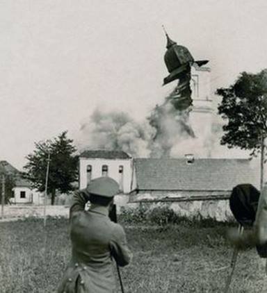 У мережі опублікували рідкісне фото, як під час війни на Волині підірвали старовинний костел.