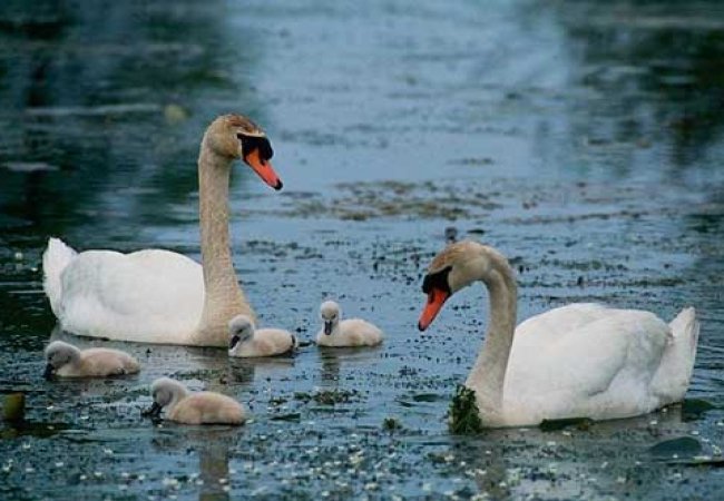 У мережі опублікували незвичне відео, як дорогою на Волині прогулювалося лебедине сімейство.