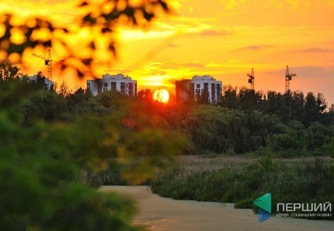 Зауважимо, що на світлинах сонце заходить за будівлі житлового комплексу «Супернова», що зводиться в районі вулиці Львівської, біля парку на Потебні.