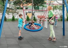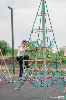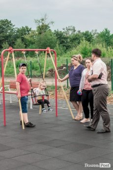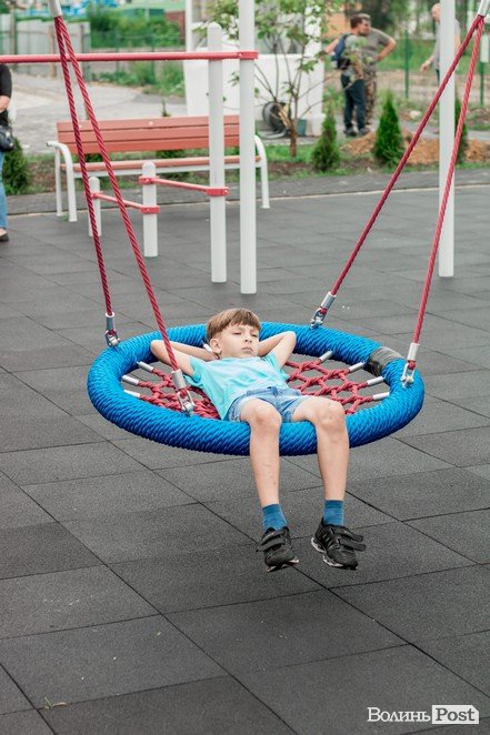 Поки мама спілкувалася із іншими власниками житла, 3-річний Артем залюбки катався на гойдалці. На дитячому майданчику біля «Юпітера» розваги для дітей на будь-який смак: тут і гойдалки різного штибу, і пісочниці, і улюблені дитячі гірки. Також територія житлового комплексу знаходиться на віддалі від дороги, скоро її обгородять, аби гарантувати безпеку.