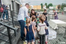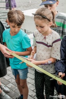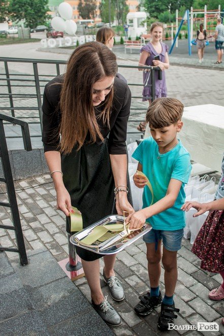 Після короткого вітального слова взялися перерізати стрічку. Разом із директором компанії до цього процесу залюбки долучилися із десяток сміливих дітлахів. Опісля усім мешканцям першої черги подарували симпатичні світильники із символікою ЖК та вручили ключі і низку документів, зокрема, гарантії на усе обладнання, яке встановлене в кватирах.