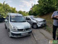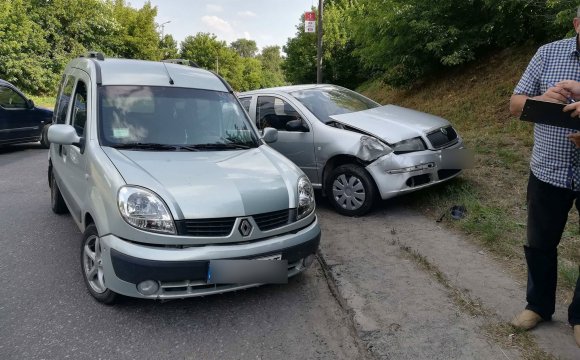 У Renault – пошкоджене колесо і крило. У Skoda – погнутий правий бік попереду.