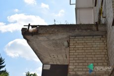 «Наш козирьок падає в цьому будинку. «М. Ж. К.» нічого не робить. Він вже скоро дітям впаде на голову. Там взагалі жах робиться. Він вже відшаровується. Він сиплеться, коли дощ іде. По ньому тече вода і він падає. Скільки ми вже разів просили зробити щось, ми переживаємо за своїх дітей, тому що у нас багато маленьких діток. Нам щось підмажуть, підлатають, але це ж не діло», - розповідає жінка.