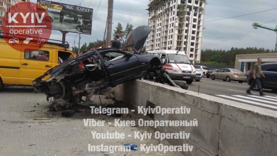 Внаслідок аварії постраждали водій і пасажир BMW. Спідометр автомобілю застиг на позначці 145 км/год, передає Київ Оперативний.