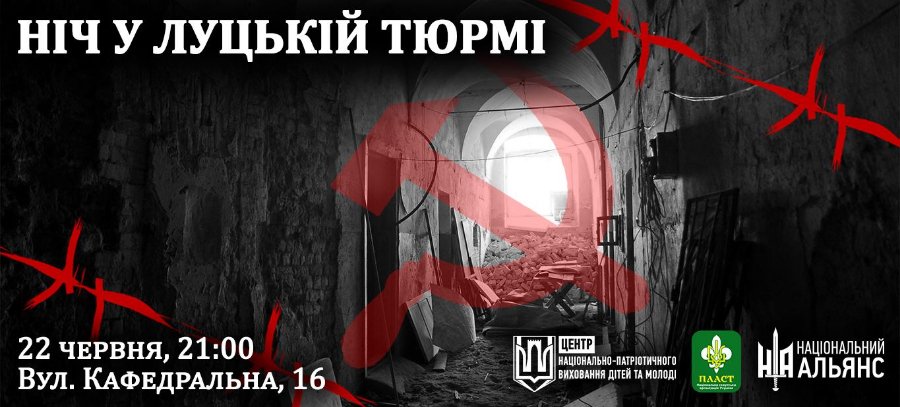 Збір на акцію «Ніч у Луцькій тюрмі» розпочнеться 22 червня о 21:00 за адресою вул. Кафедральна, 16.