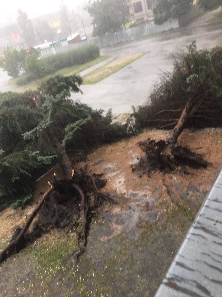 У Луцьку поблизу РАЦСу під час рясного граду та дощу повалило ялинки.