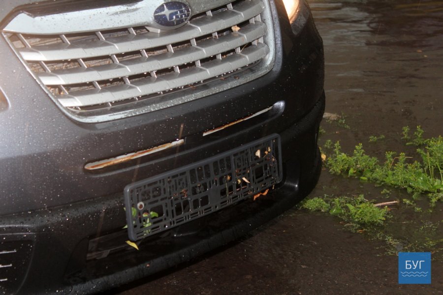 З машин, котрі були припарковані на вулиці потоки позривали номерні знаки, а біля приміщення суду створився затор з машин, які потрапилши у водяну пастку.