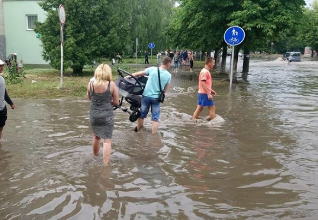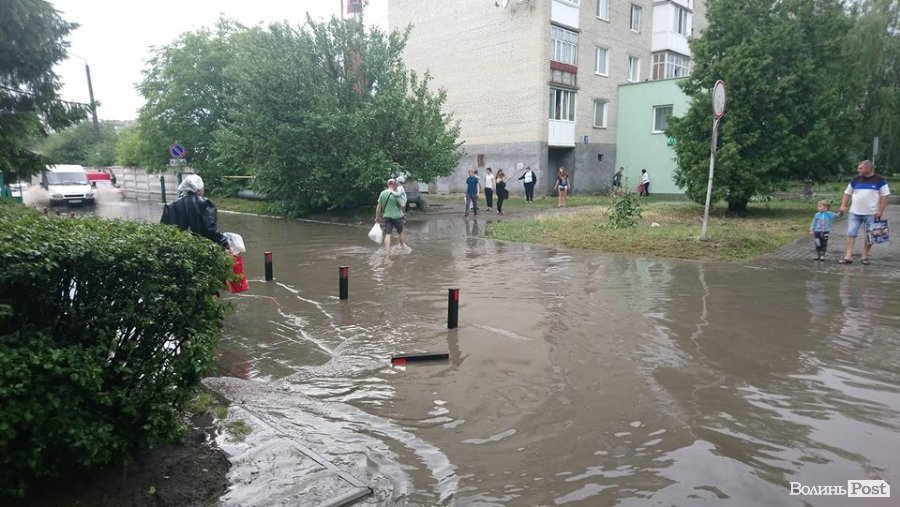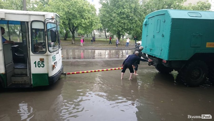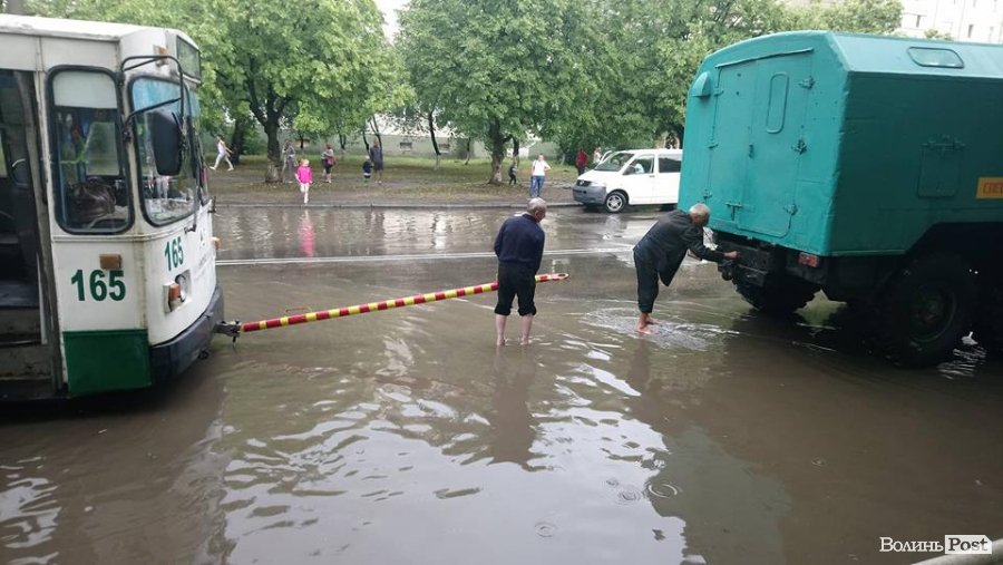 У Луцьку після зливи постраждали автівки і громадський транспорт.