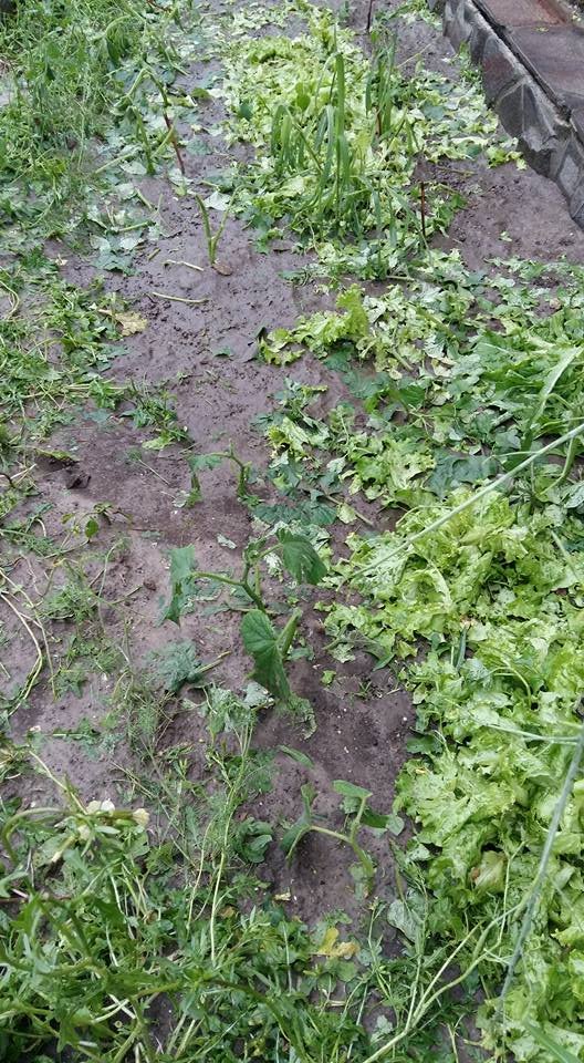Ніколайчук опублікував світлини із городиною, яку понівечив град.